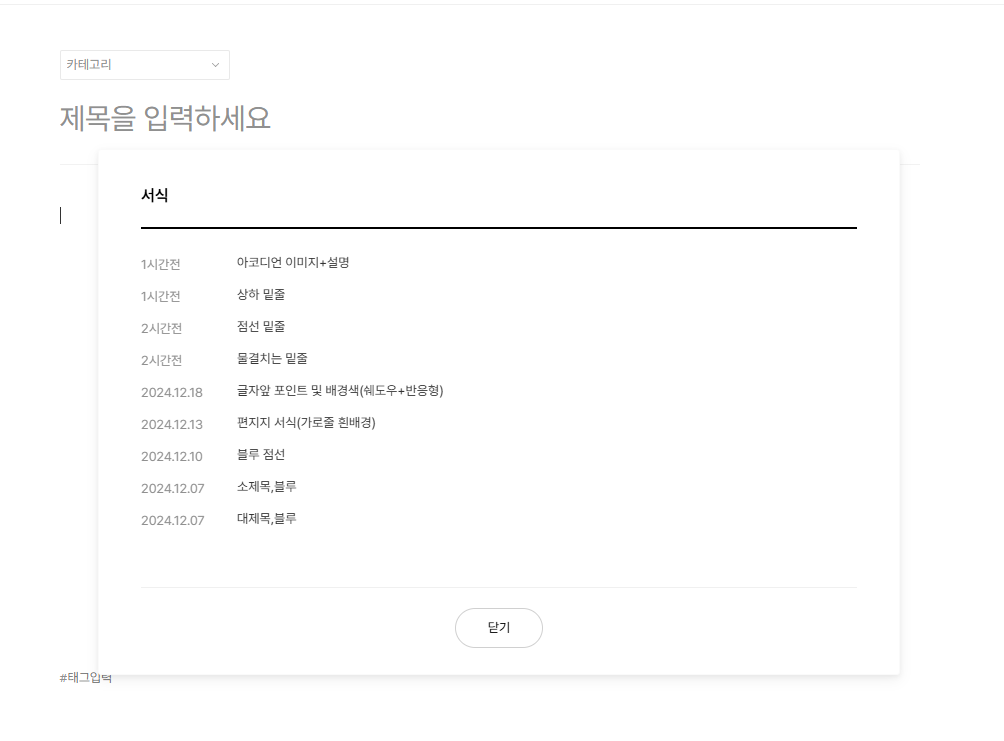 9. 글쓰기 모드 진입 … 점 누룬뒤 서식을 선택합니다.